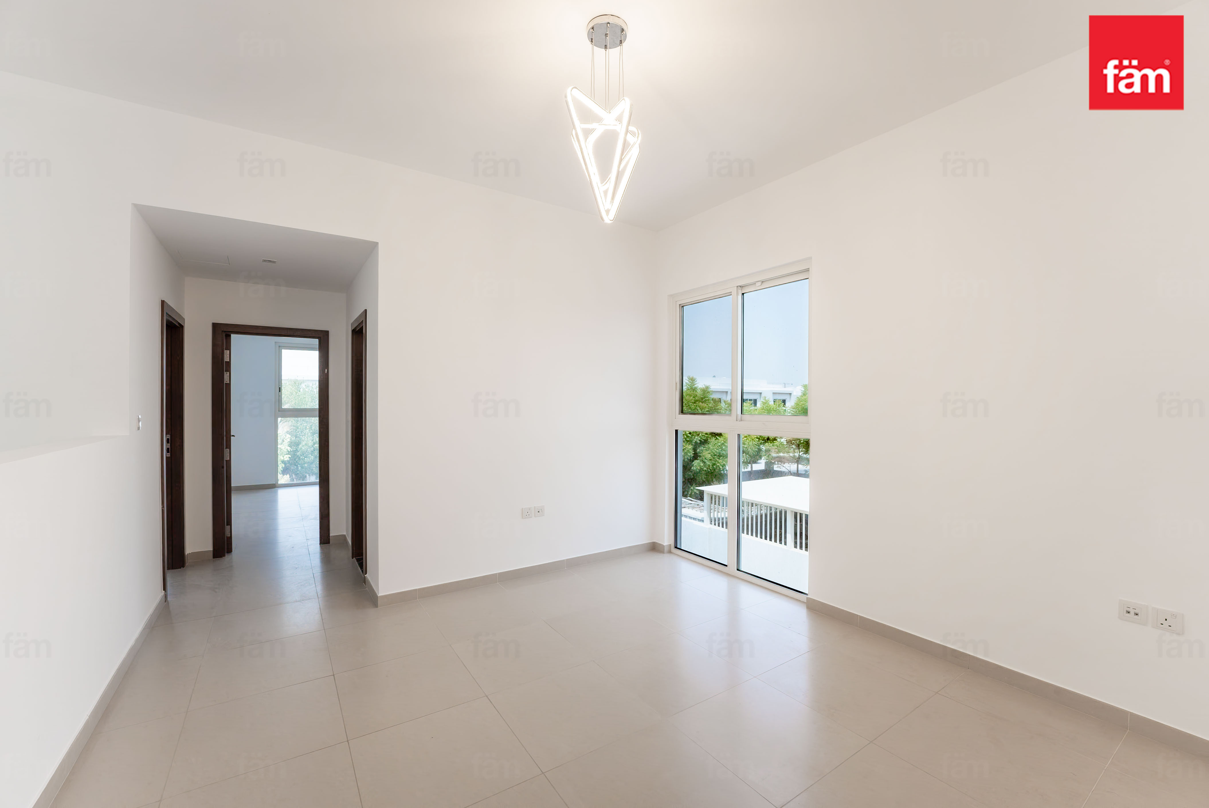 * Floor-to-ceiling windows and built-in wardrobes