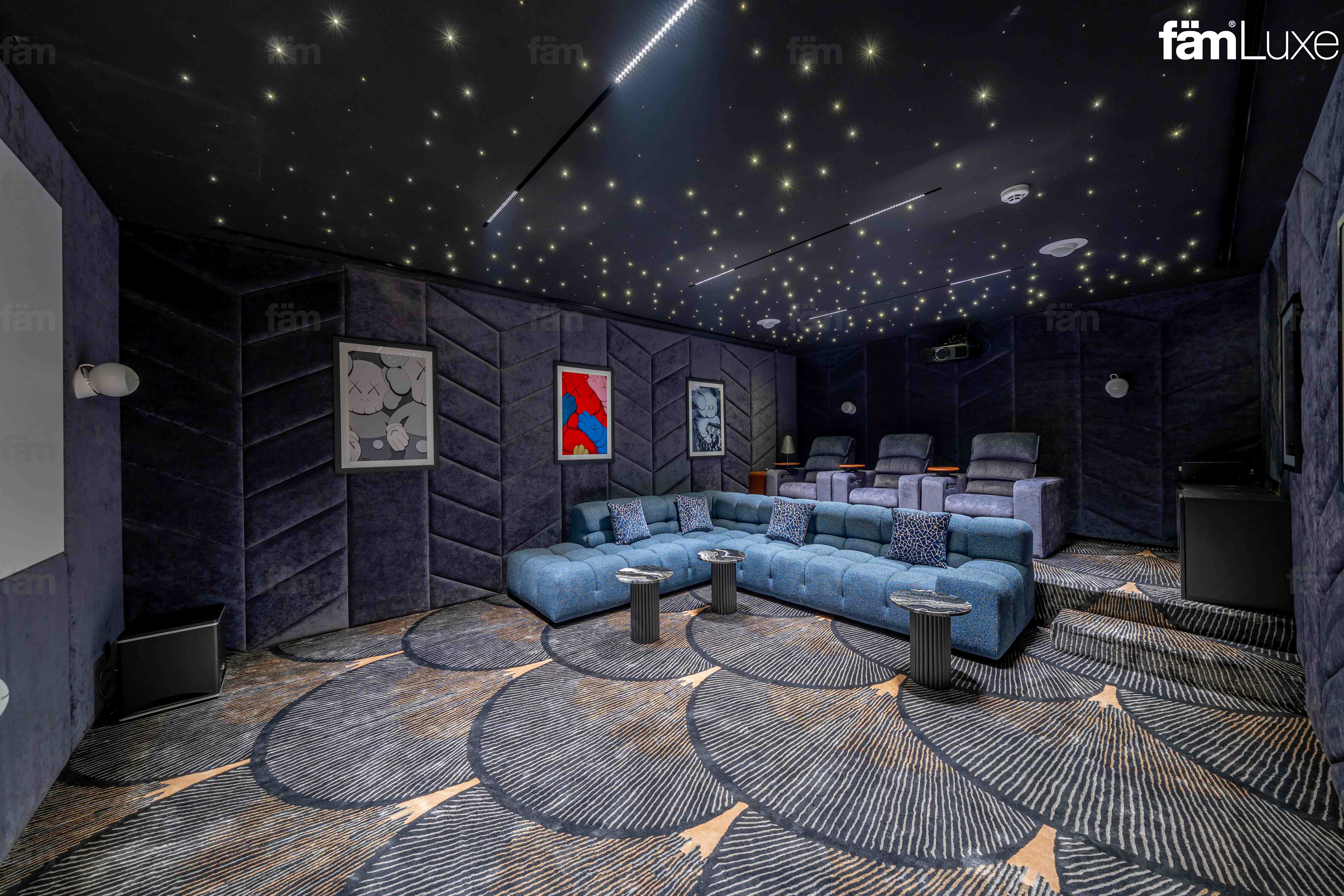 • Private entertainment spaces including cinema, lounge, and gym