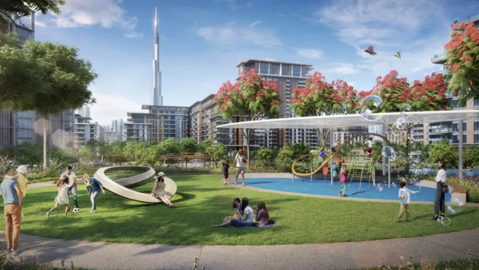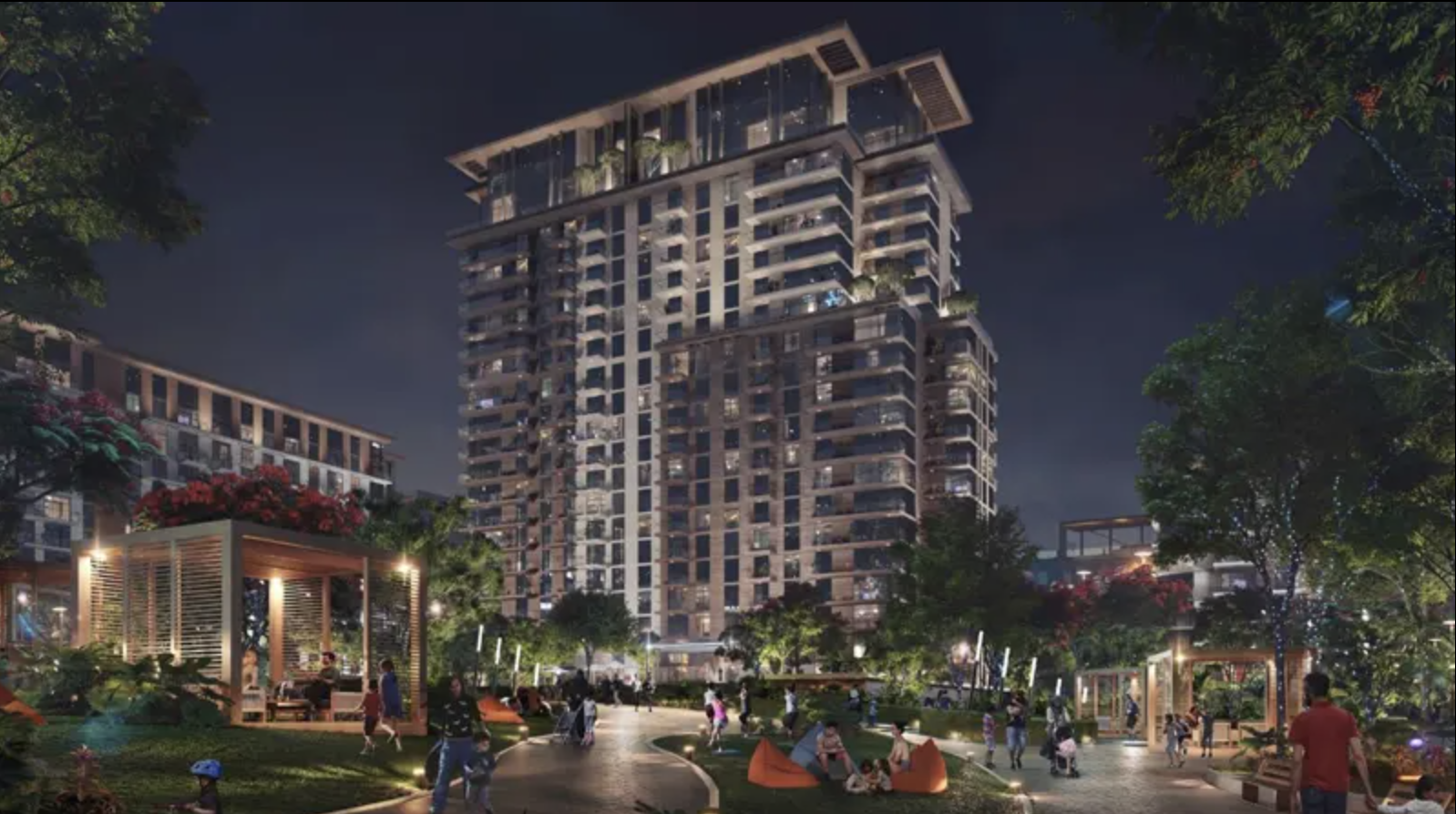 * Resort-style amenities including: Pools and water play areas, Kids play area, Running track, Dog park, Multi-use games and sports lawns, Tennis and squash courts, Half-court basketball, Skate-able landscape, Games tables, Outdoor gym and fitness station, Spa and sauna, Yoga and meditation areas, Dining outlets and retail stores, Function rooms, Nursery