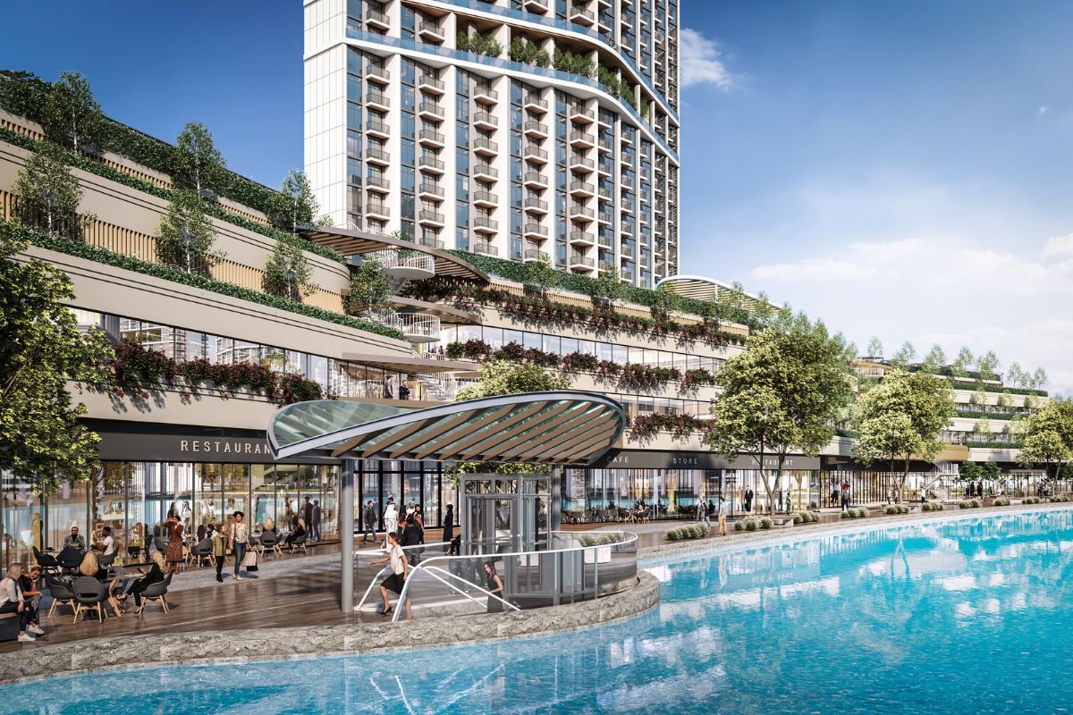 • Retail & Dining: Shops, cafés, restaurants, BBQ areas, and community hub