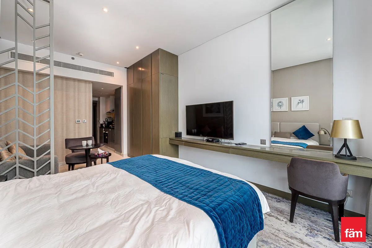 fäm Properties presents this fully furnished studio apartment for rent in Prive by DAMAC (A), Business Bay, perfect for luxury living in a prime waterfront location. This stylish studio offers elegant interiors, a well-optimized layout, and panoramic views of the Dubai Canal. Residents benefit from 5-star amenities including a fully equipped gym, spa, swimming pools, valet parking, and on-site F&B outlets. With seamless access to Downtown Dubai, DIFC, and major transport links, this property combines convenience, comfort, and high rental appeal.