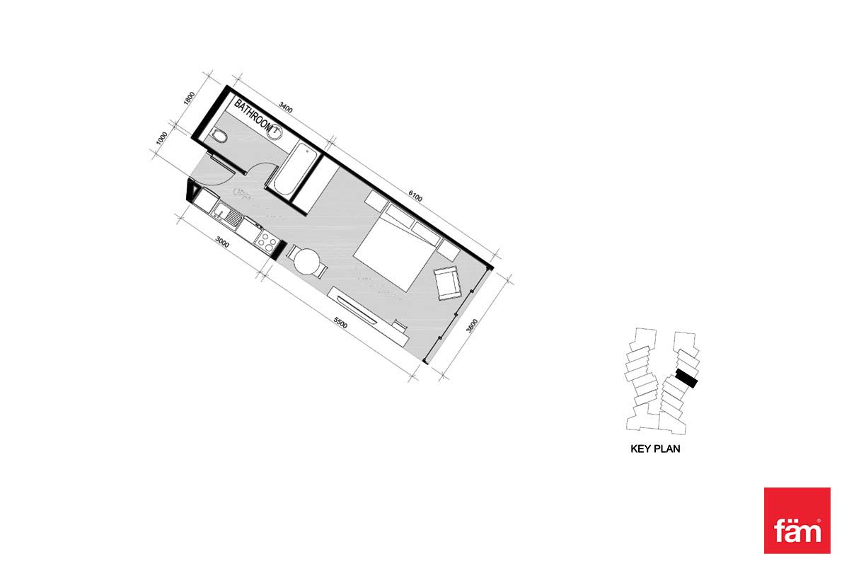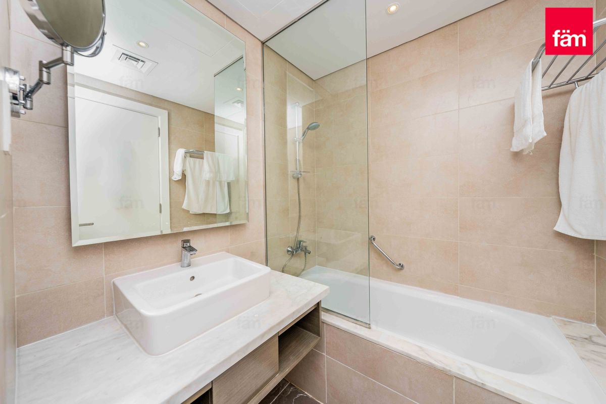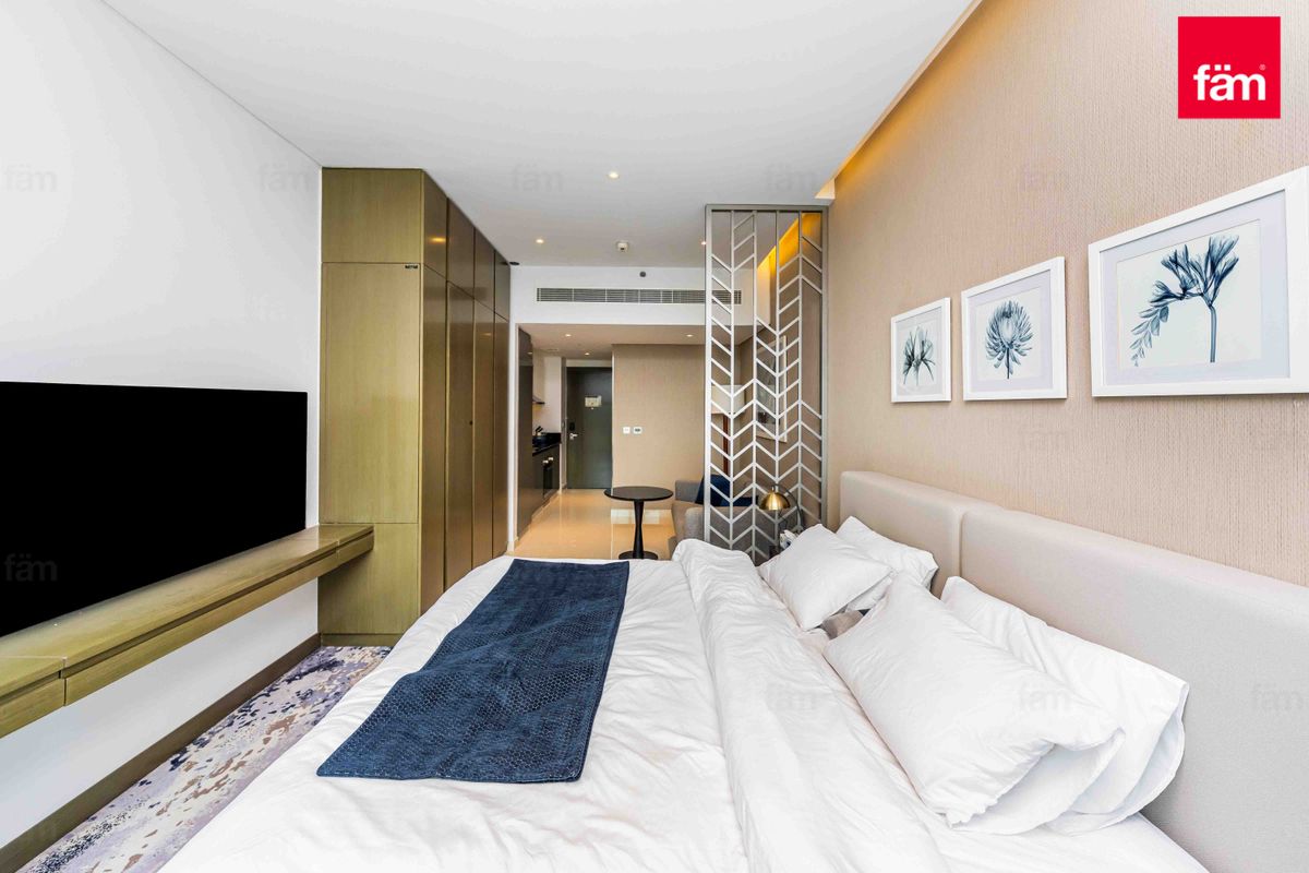 Prive is one of the best developments yet because it’s a twin-tower project located directly on the Dubai water canal on Al Abraj Street in Business Bay. All units are fully furnished and serviced with a canal/lake view from their floor-to-ceiling windows and balconies. The finishing, furniture, and materials in this project are far more superior when compared to their other developments. The sofa has a pull-out bed, the wardrobes have built-in lights, and the bathroom countertops are marble. The studio has a built-in carpet under the bed area and has a partition between the bed and sitting areas. The work desk is built into the wall itself.