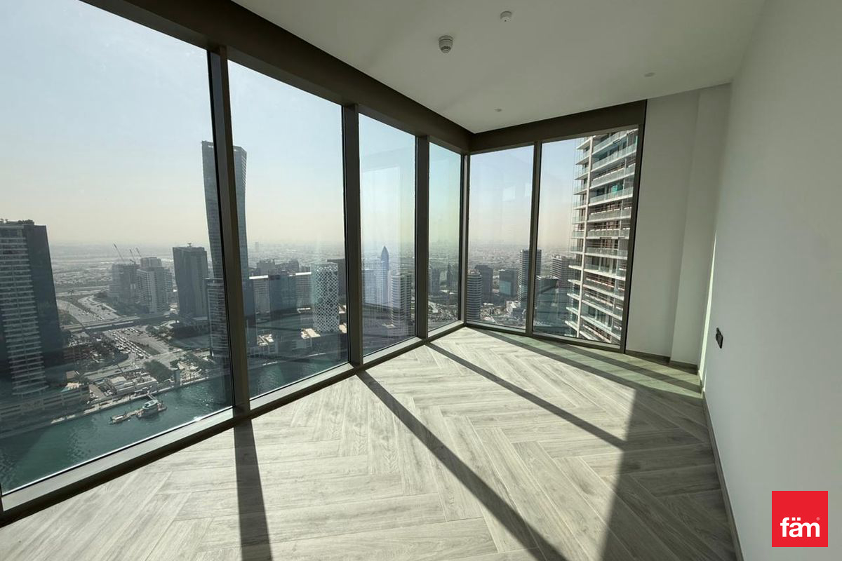The apartment features a wide range of premium amenities including built-in wardrobes, a maid room, a private garden, study room, laundry room, balcony, and a private Jacuzzi. Additional highlights include walk-in closets, pet-friendly policy, air conditioning, an open kitchen, and high-floor positioning that ensures uninterrupted waterfront and sea views. Residents will also benefit from elevator access, privacy, and the security of a gated community.