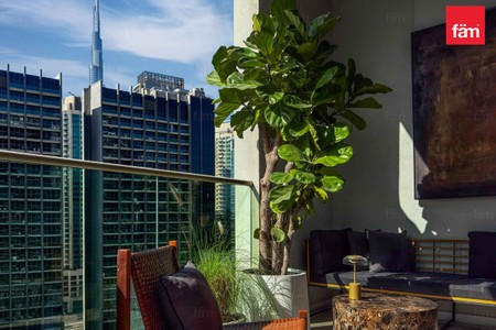This meticulously furnished unit spans 915 square feet and offers three well-appointed bathrooms, designed for both comfort and style. Located on a high floor, residents enjoy breathtaking panoramic views of the iconic Burj Khalifa and the serene Dubai Water Canal.