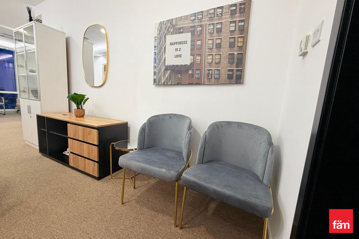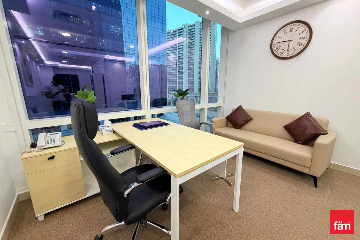fäm Properties is pleased to present this fully furnished office space available for rent in the prestigious Tamani Art Tower, located in the prime Business Bay district of Dubai.