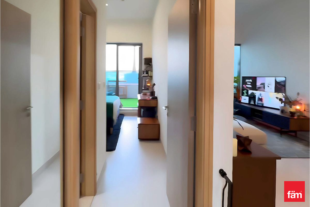Step into a world of refined living with a spacious open kitchen equipped with premium appliances, built-in wardrobes, and air conditioning throughout, including central AC for ultimate climate control. The apartment features 2 elegantly appointed bathrooms, a private balcony overlooking serene community views, and a host of premium amenities designed for discerning residents. Enjoy the convenience of a fitted and furnished interior, pets-allowed policy, elevator access, and secure garage with covered parking. The gated community ensures privacy and security, complemented by a welcoming lobby, shared gym, fitness centre, and refreshing shared pool – all within a flood-drained, electricity-ready environment.