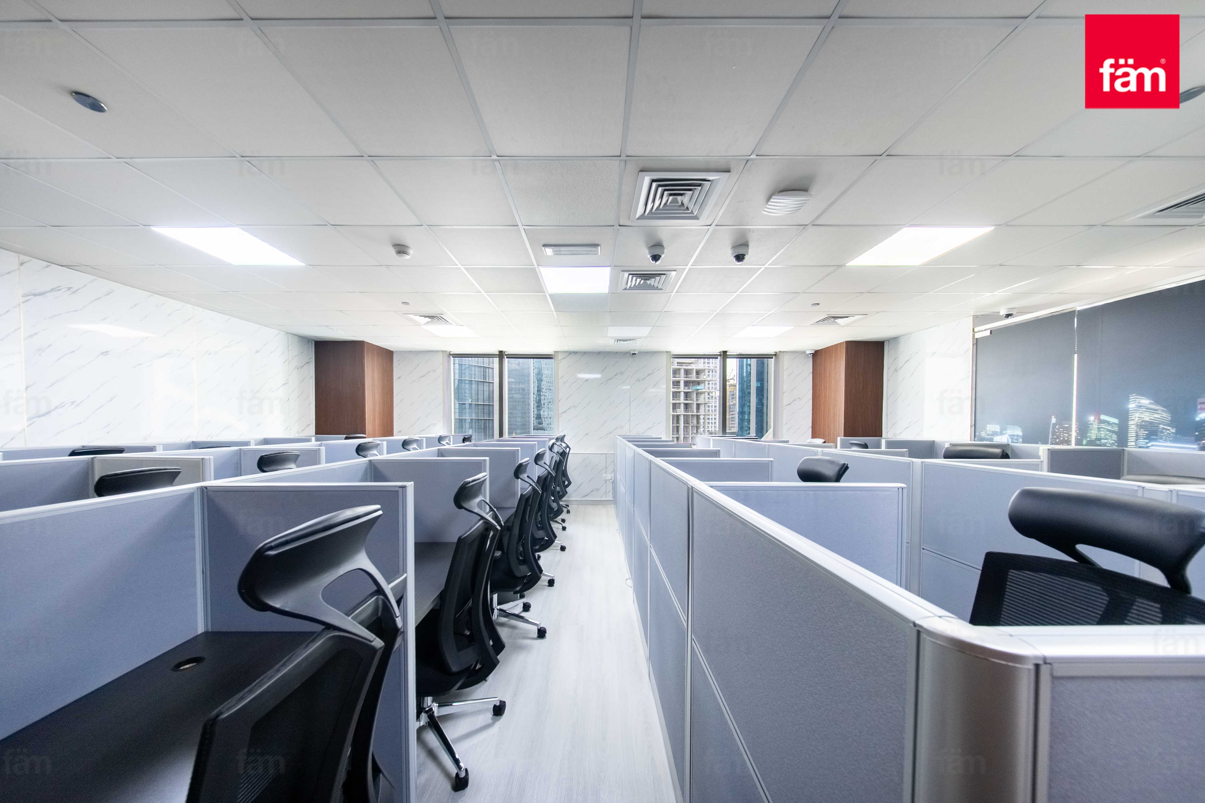 Floor-to-ceiling glass windows allowing natural light