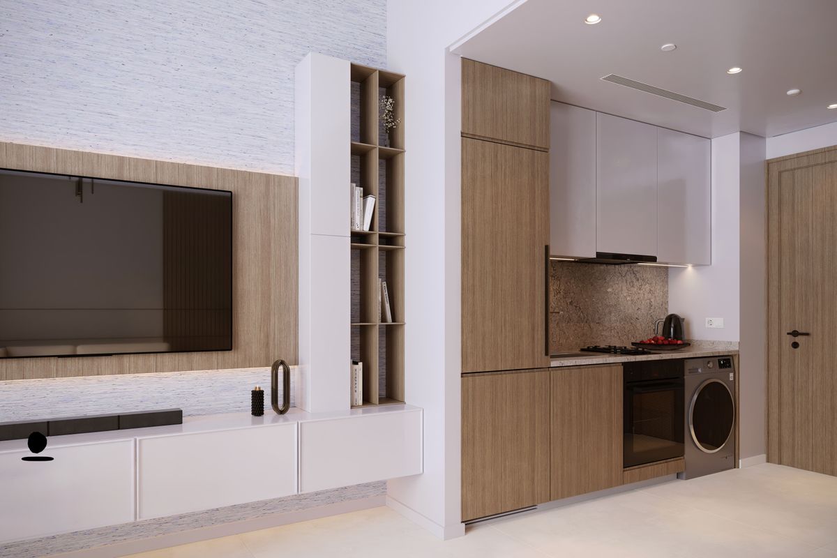 - Modern kitchen equipped with essential appliances and open kitchen layout