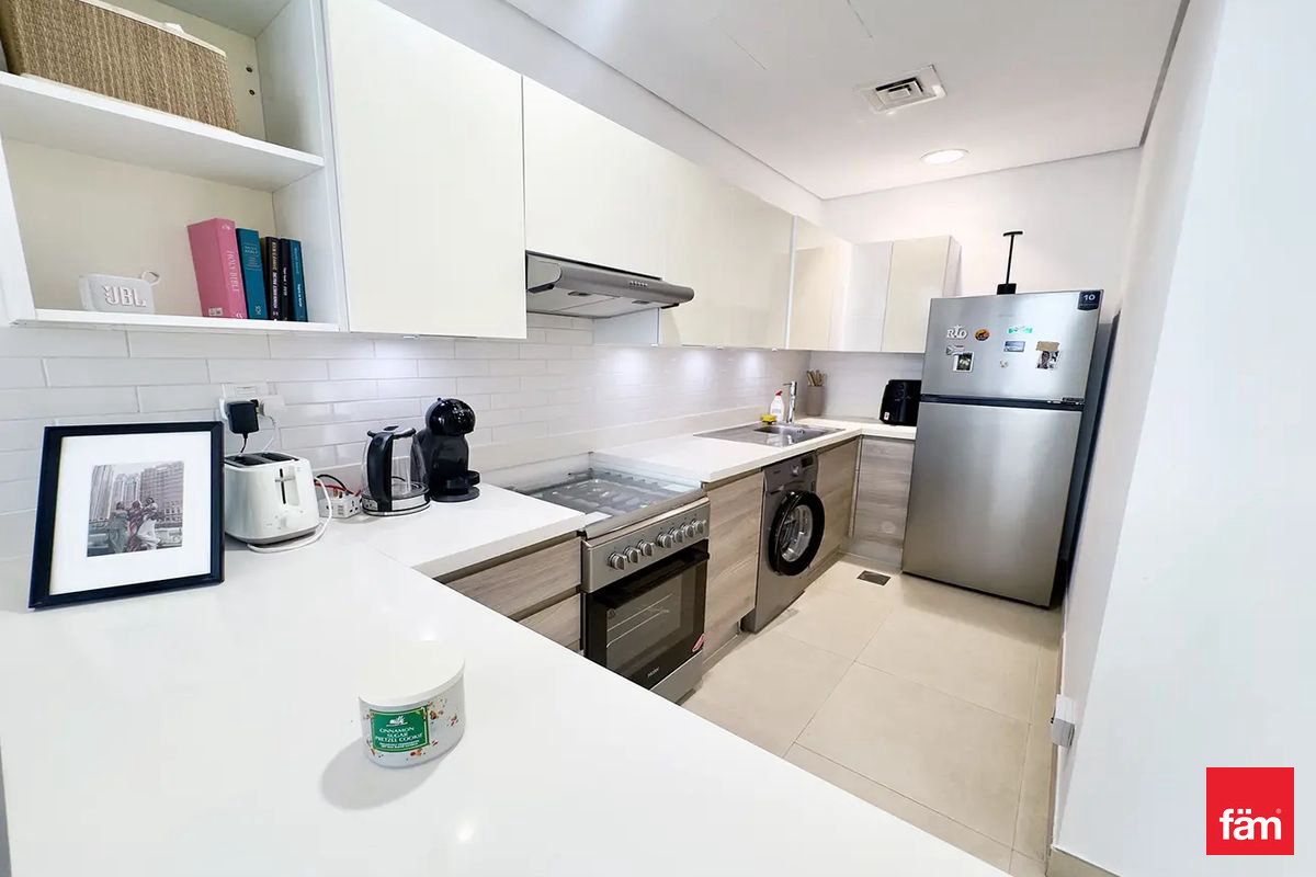 Presented by fäm Properties, this fully furnished 1-bedroom apartment is located in Iris Amber, a modern low-rise residence in the heart of Al Jaddaf.