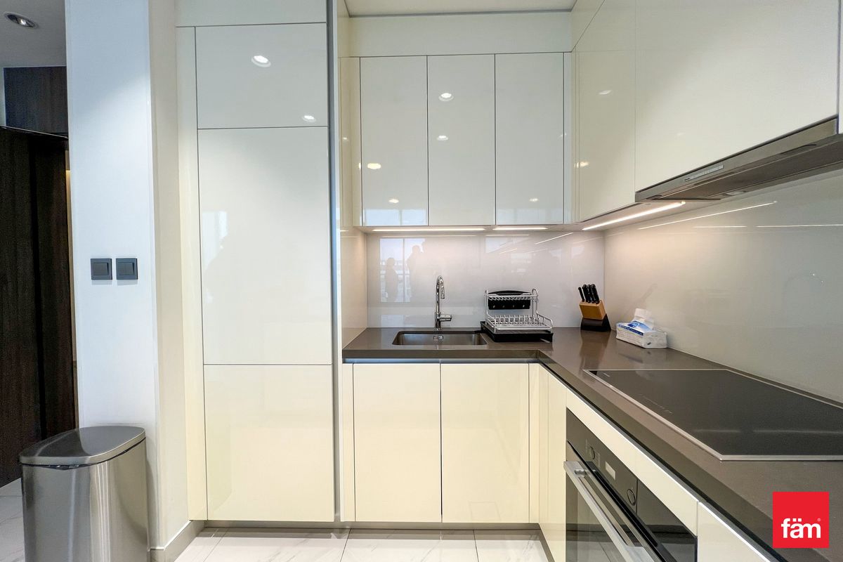 Brought to you by fäm Properties, this modern fully furnished 1 bedroom apartment is located in Mohammad Bin Rashid City with stunning lagoon and Burj Khalifa view.