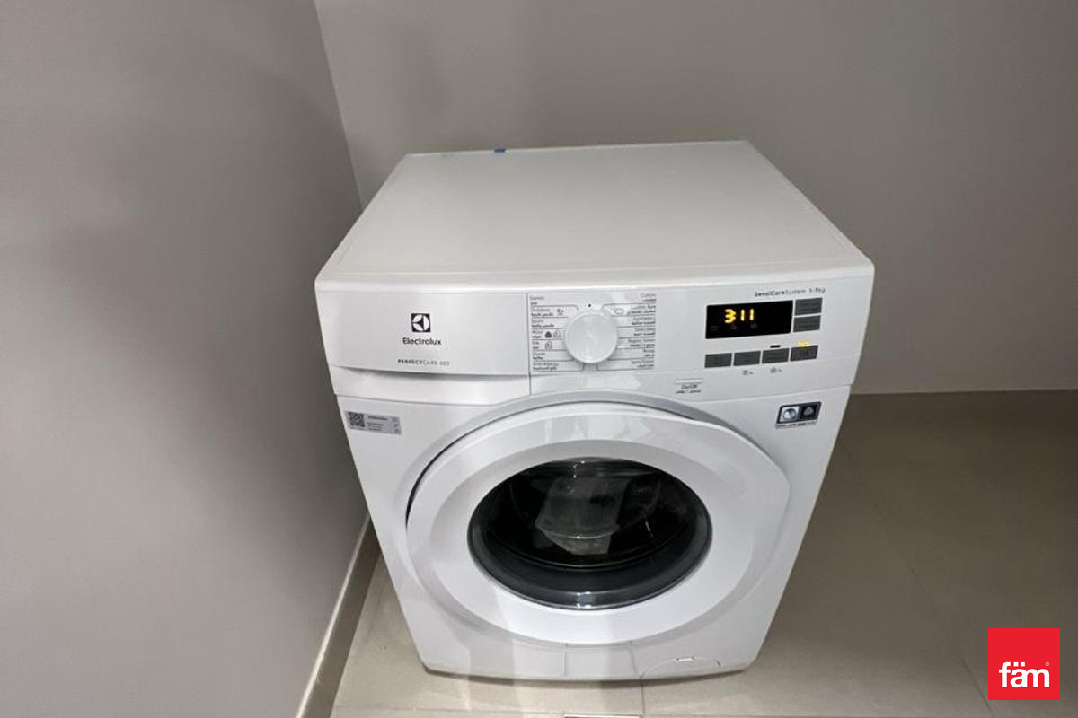 • Modern kitchen with fitted cabinets (with refrigerator and washing machine)