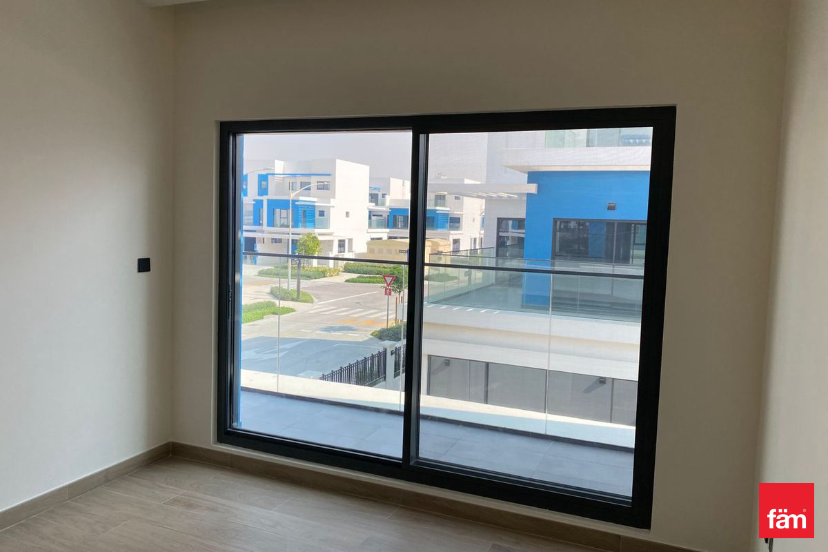 fäm Properties is pleased to present this exquisite 5-bedroom townhouse located in the prestigious DAMAC Lagoons Santorini 1 community. This spacious and brand-new residence offers a generous 2,651 square feet of thoughtfully designed living space, complemented by six bathrooms and a serene community view.
