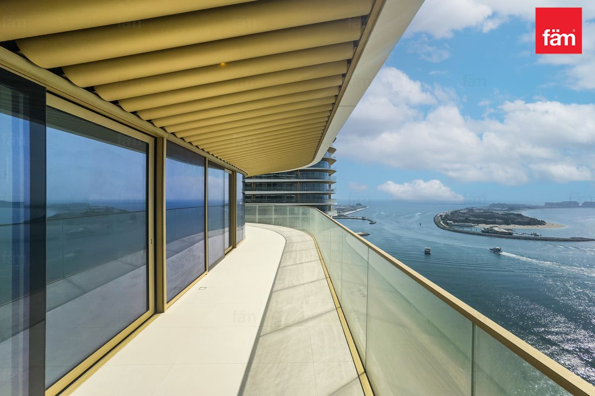 fäm Properties is proud to present this stunning 3BR Apartment with Full Palm Jumeirah Views in Grand Bleu by Elie Saab - Tower 1, EMAAR Beachfront.