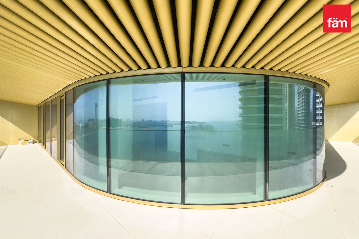 ▪︎ Large curved corner balcony overlooking Palm Jumeirah