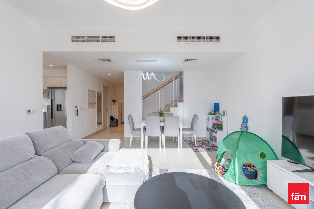 The townhouse features a bright open-plan living and dining area, a modern kitchen with ample storage, and large windows that fill the home with natural light. All bedrooms are generously sized, with the master bedroom offering built-in wardrobes and an en-suite bathroom. The maid’s room adds extra convenience for families.