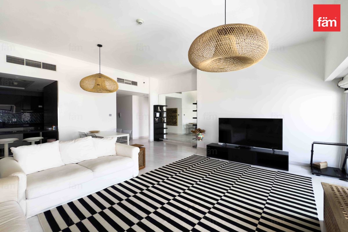 This sleek, renovated 2-bedroom apartment in Cayan Tower offers a modern living experience with stunning ocean and sea views. Fully furnished and equipped, it features built-in wardrobes, walk-in closet, open kitchen with appliances, laundry room, and a balcony to enjoy the serene surroundings.