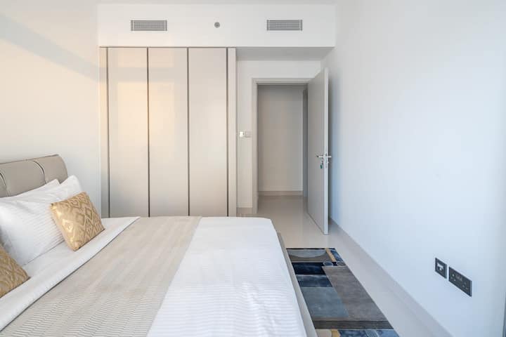 Discover luxury coastal living in this fully furnished, upgraded 2-bedroom apartment located in the prestigious Emaar Beachfront community. This exquisite residence offers breathtaking, unobstructed views of the iconic Dubai Marina skyline and the serene waters of Dubai Harbour.