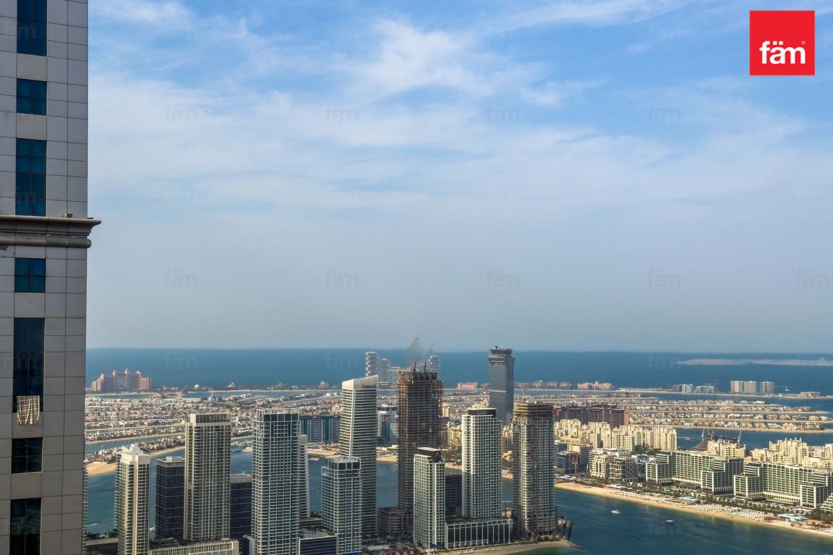 A rare high-floor 1-bedroom in Torch Tower, offering sweeping open views of the sea, Palm Jumeirah, and the Dubai Marina skyline from a level few units reach.