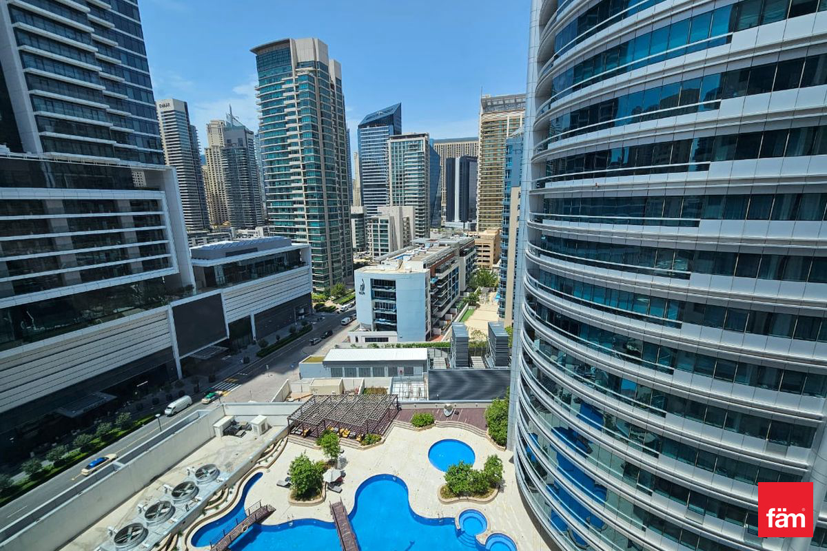 Nestled in the heart of Dubai Marina, this investment property epitomizes modern living with its array of premium features. The open kitchen, fitted with high-end appliances, seamlessly integrates with a spacious pantry and laundry room, while built-in wardrobes and a dedicated storage room ensure ample organization. Step onto the private balcony to savor panoramic landmark views, enhanced by central air conditioning and full privacy. Residents benefit from top-tier amenities including a sparkling pool, shared gym, fitness centre, shared pool, children's play area, and children's pool – all designed for a balanced, family-oriented lifestyle. Additional conveniences such as an elevator, covered parking, secure lobby, 24/7 security, and networked electricity provide peace of mind in this exclusive community.