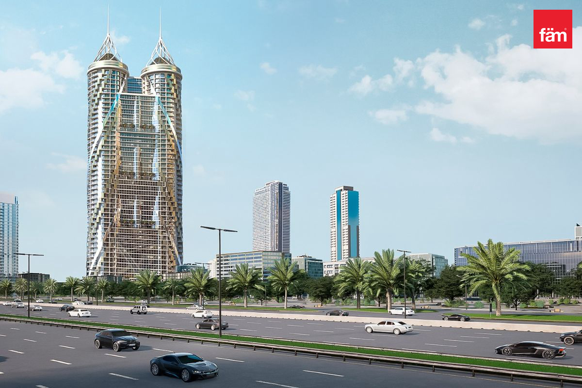 Designed by Gary Greene Design, the building's unique facade creates an illusion of circular movement, enhancing its architectural appeal. Residents will enjoy panoramic views of the Palm Jumeirah and Sheikh Zayed Road, along with high-quality finishes and modern amenities.