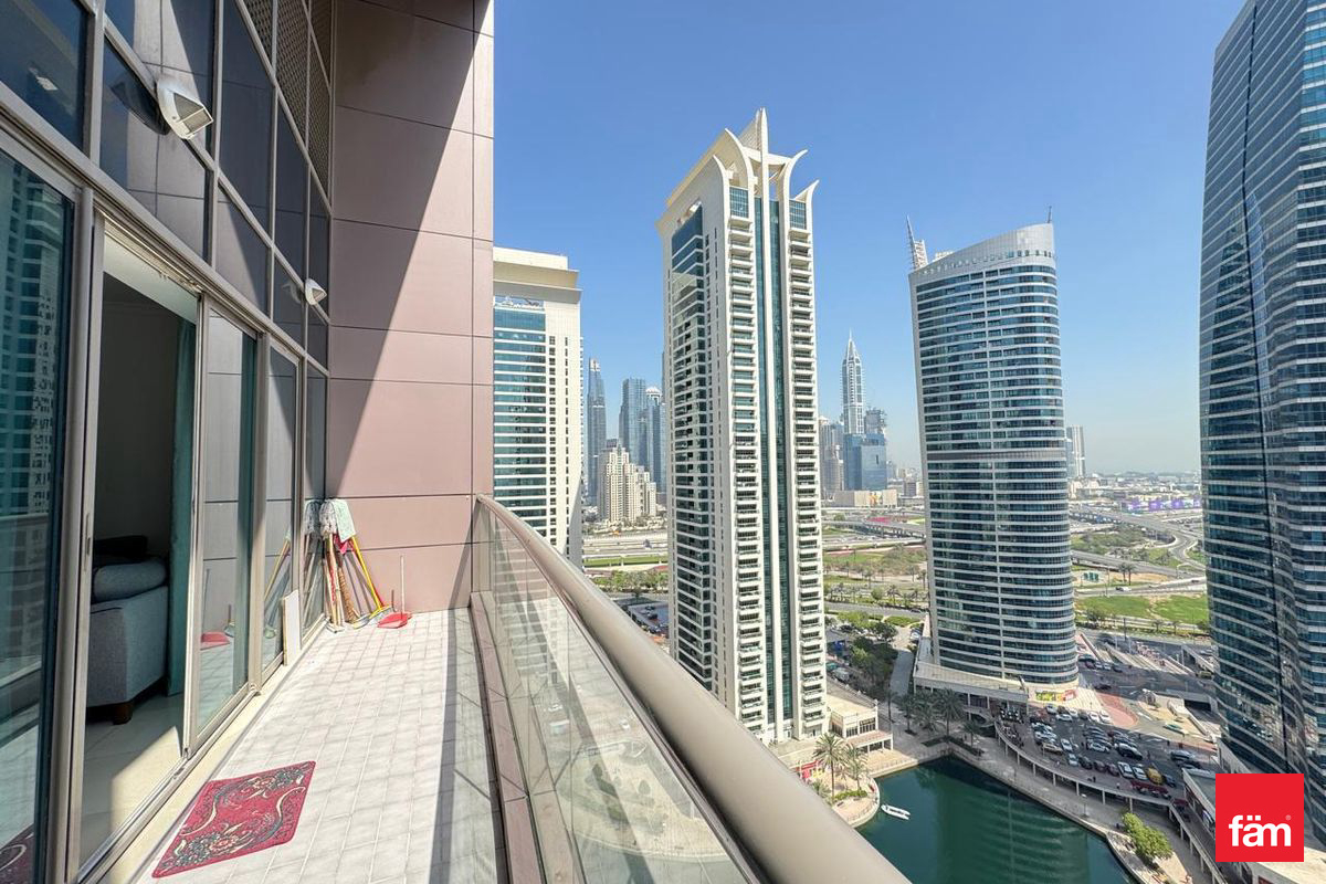 The layout is both practical and spacious, featuring a generous living and dining area that flows seamlessly to a private balcony. The balcony provides a peaceful outlook over the JLT lake and surrounding greenery, creating a tranquil retreat at the heart of city life.