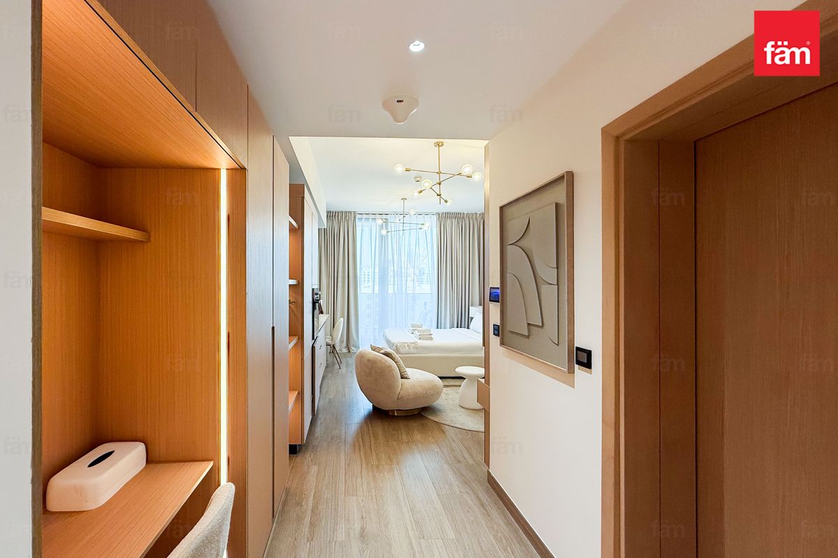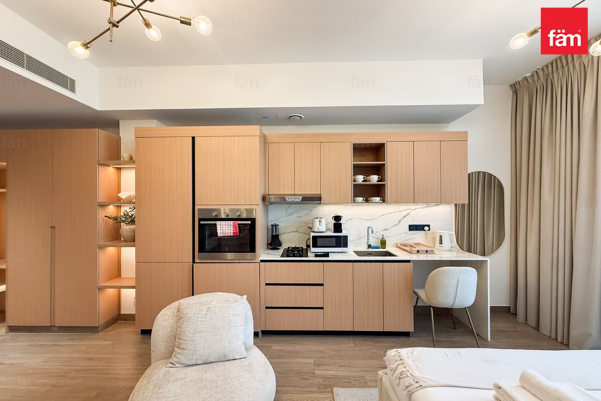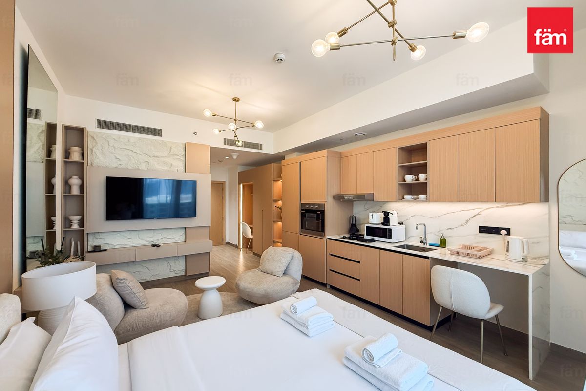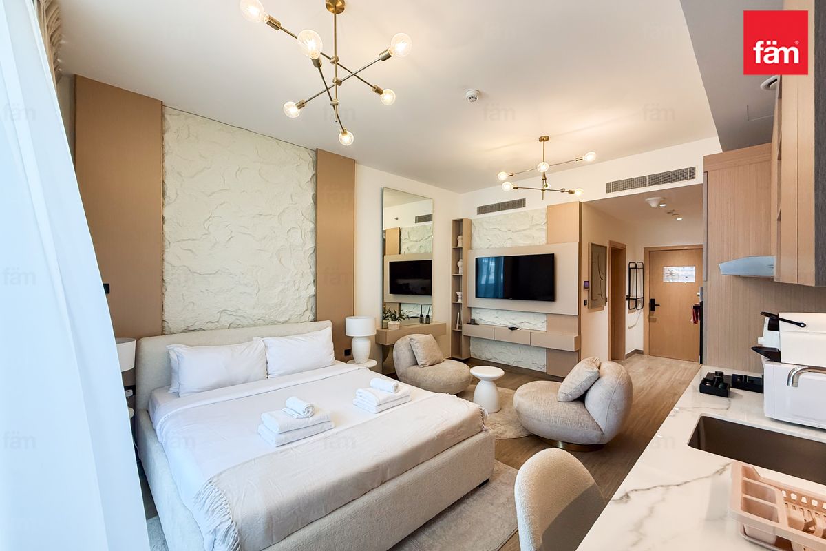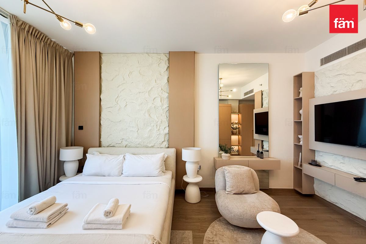 Discover a modern and spacious studio in Aura by Grovy, Jumeirah Village Circle, currently operating successfully as an Airbnb with a professional management company in place.