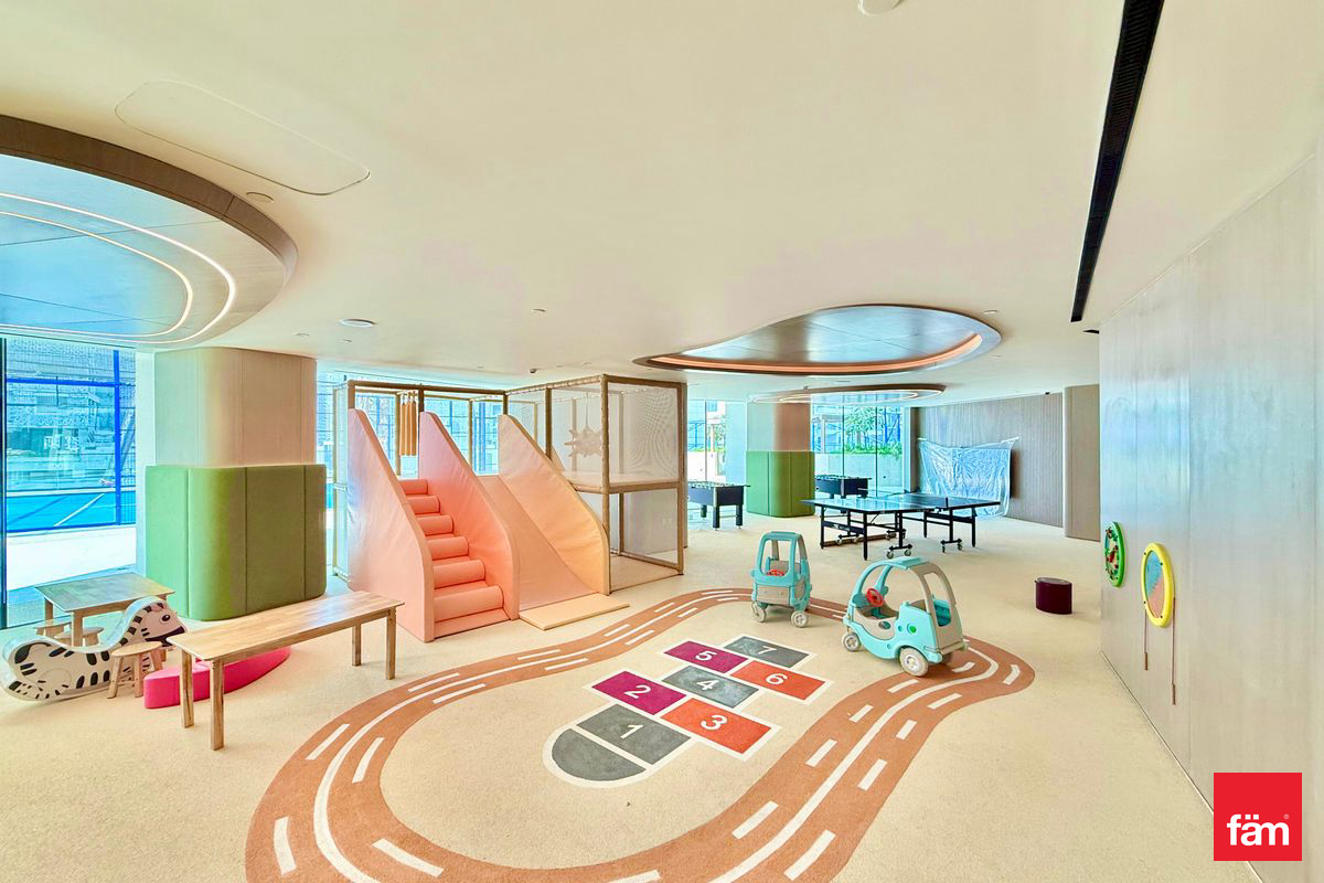 Nestled in the vibrant JVC community, renowned for its family-friendly ambiance and strategic location, this property provides seamless access to key Dubai landmarks such as Dubai Marina, Mall of the Emirates, and Al Khail Road. Ideal for professionals and investors seeking a high-yield investment property, it boasts premium amenities including a smart home system, fitted open kitchen with appliances, private balcony, private jacuzzi, and air conditioning for ultimate comfort. Additional highlights encompass a private pool, steam room, sauna, shared gym, children's play area, and children's pool, ensuring a resort-like lifestyle. Security is paramount with 24/7 surveillance, covered parking, garage, elevator, and a welcoming lobby. Pets are allowed, adding to the privacy and flexibility of this fitted, brand-new haven. The conference room caters to remote work needs, while the overall design promotes a sophisticated, contemporary retreat.