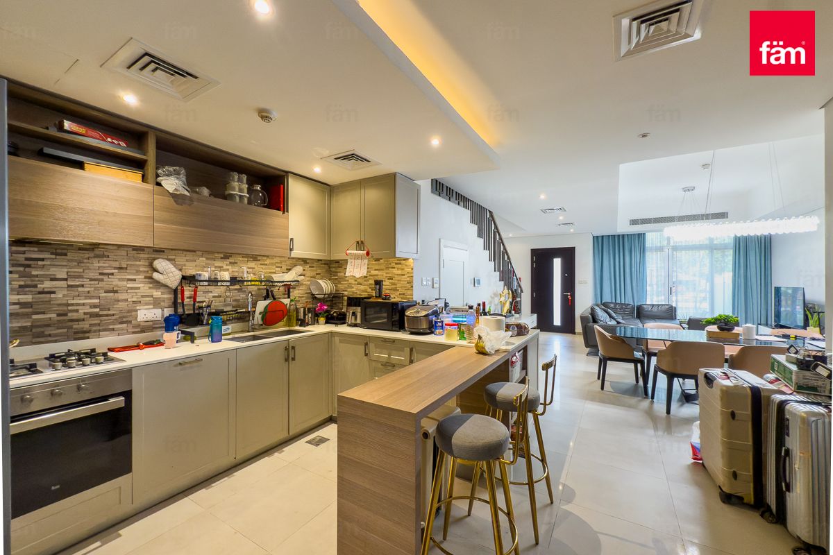 fäm Properties is pleased to present this luxury 4 bedroom plus maid townhouse in Somerset Mews, JVC. Designed with modern living in mind, this G+2 home features elegant finishes, spacious layouts, and family-friendly amenities.