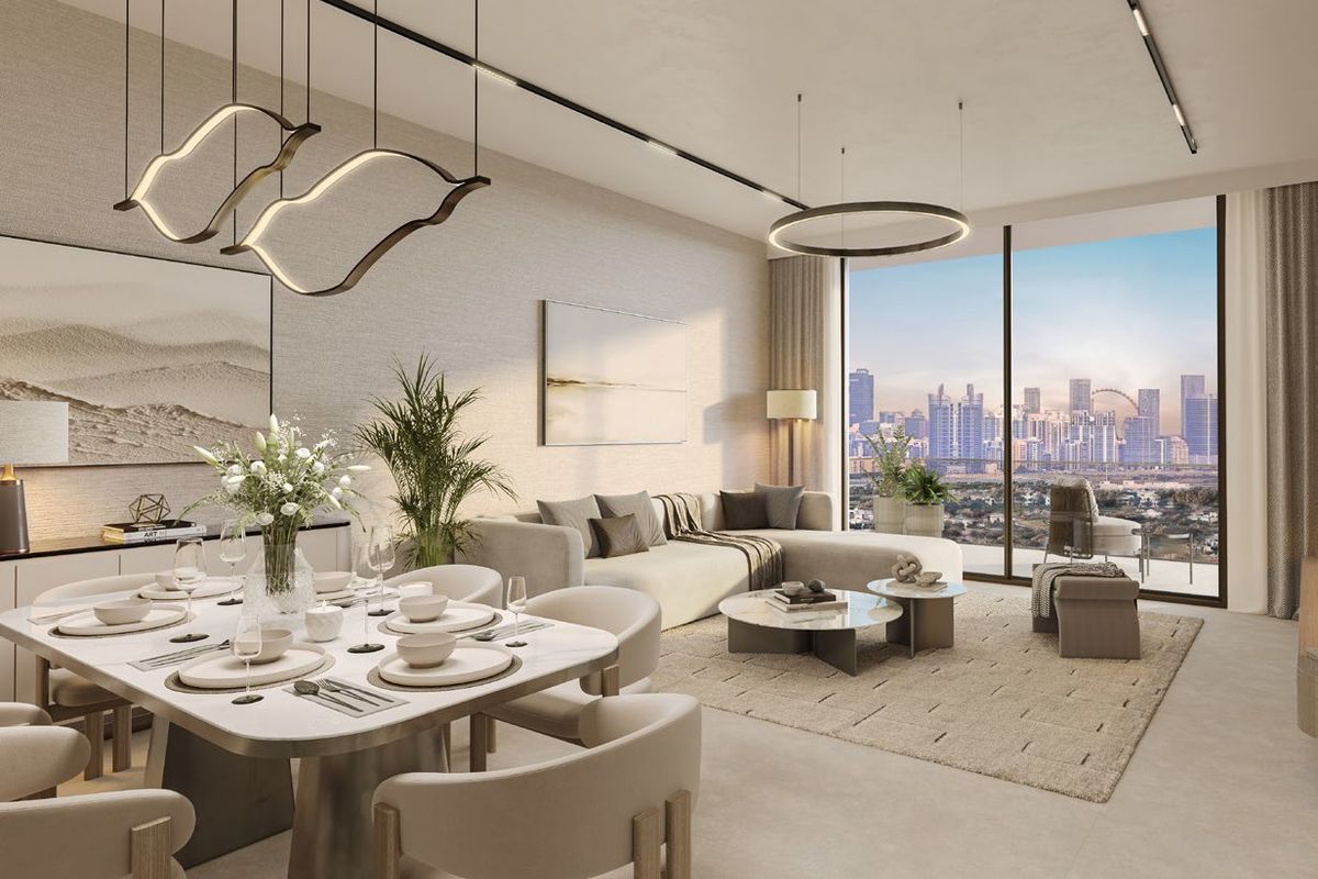 Sol Levante is set in Jumeirah Village Triangle (JVT), a low-rise neighborhood offering scenic views of the sea, Bluewaters Island, and the Dubai Marina skyline. The building is uniquely designed to follow the sun’s path, with a dynamic façade that plays with light and shadow—enhancing natural light throughout the interiors.