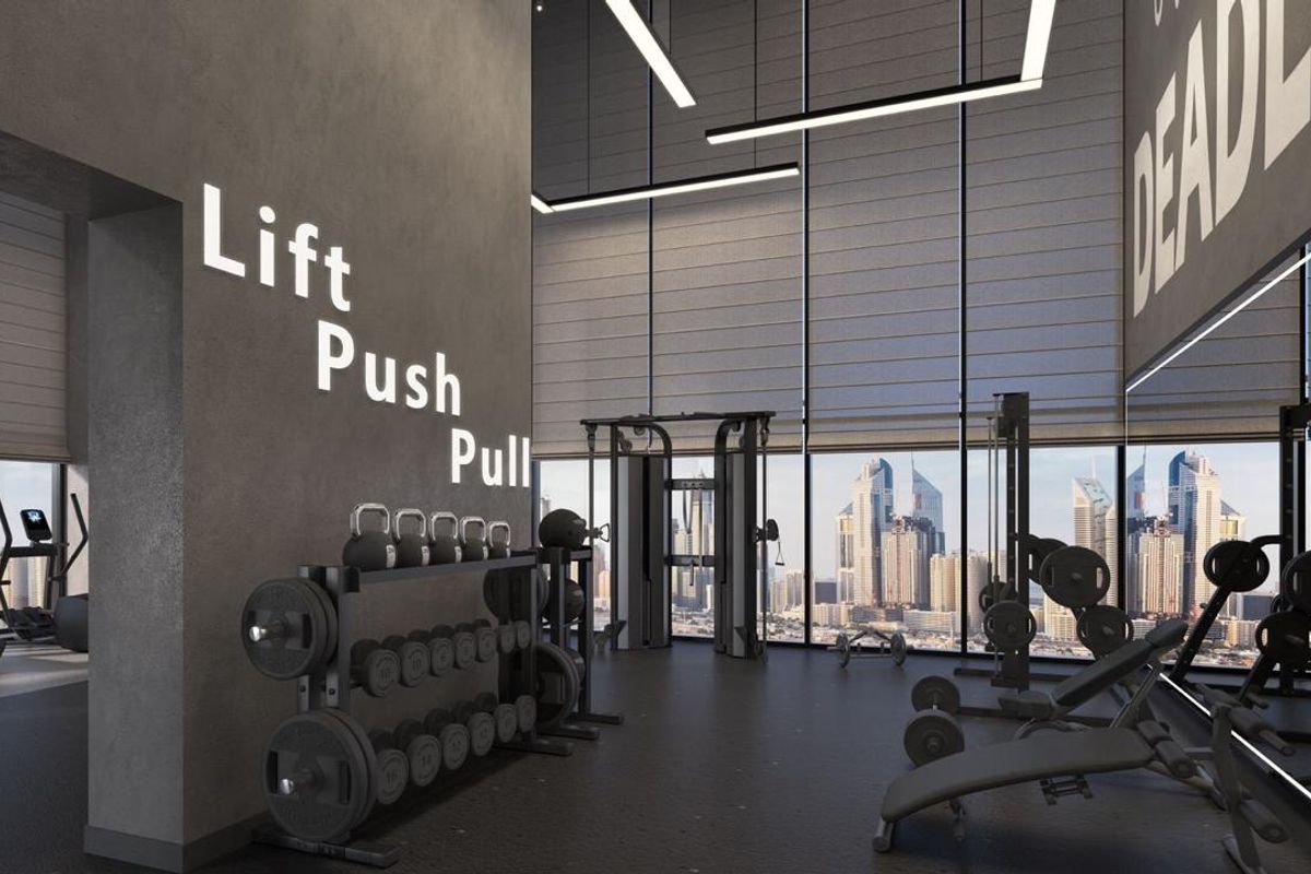 Double-height rooftop gym with state-of-the-art equipment