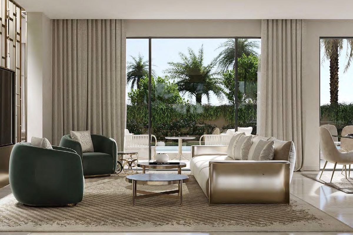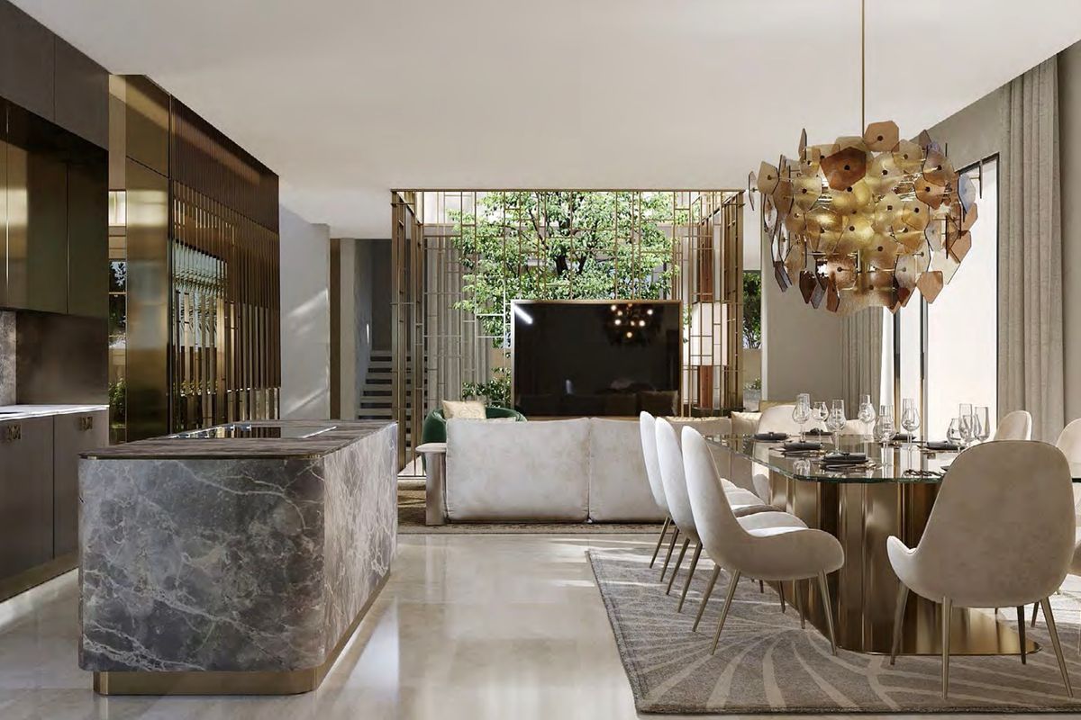 The villa spans a built-up area of 7,677 sqft on a 7,578 sqft plot, offering generous space for comfortable and elegant living. It features six spacious en-suite bedrooms, high-end finishes, and floor-to-ceiling windows that flood the interiors with natural light.