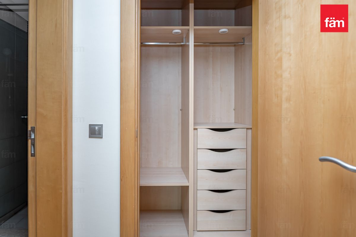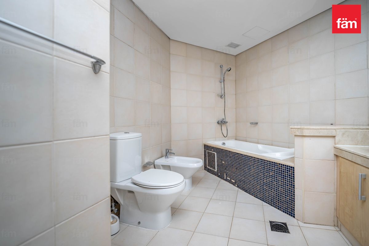 Positioned on a high floor, this bright home offers an ideal blend of comfort and practicality. The layout features an open-plan living and dining area extending onto a private balcony with pleasant community views. It is enhanced by a well-appointed kitchen and a wide entrance hallway offering additional storage. Both bedrooms are generously proportioned with built-in wardrobes, while the maid’s room with en-suite delivers added convenience.