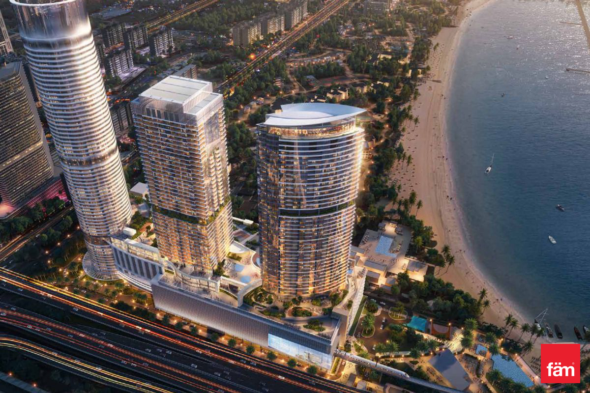 Palm Beach Towers, a new, three-tower residential, retail and beach club complex at the foot of its flagship master development, Palm Jumeirah. The Palm Beach Towers includes three high-rise buildings – the tallest topping 285 metres – to be constructed on top of the existing Palm Monorail terminal, which includes 14 levels of parking spaces. Located at the entrance to Palm Jumeirah, The Palm Beach Towers will boast convenient transport links to other parts of the island and to the rest of Dubai. Landscaped podium deck with pool, sports courts and 8,600 sq ft of retail space. Beach club with kiosks and restaurants, Gym, spa, pools, sports courts and jogging track, Supermarket and food court. Within podium building Palm Monorail onsite, with links to the Dubai Tram and Dubai Metro. Extensive views of Palm Jumeirah, the Arabian Gulf, and the Dubai skyline.
