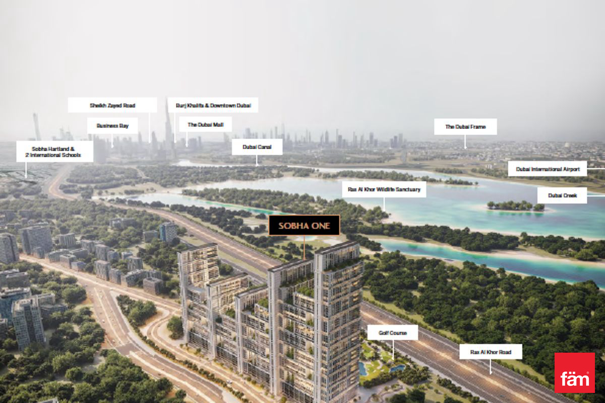 Presented by fäm Properties, the largest and most trusted real estate agency in Dubai, this brand-new, off-plan 2-bedroom apartment in Sobha One Tower B offers an exceptional opportunity to own a premium residence in Ras Al Khor.