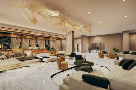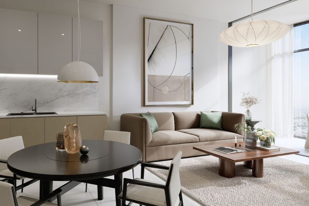 The tower stands 82 stories tall, including a ground floor and 81 residential floors, offering modern 1-3 bedroom apartments with functional layouts and spacious interiors. The windows provide breathtaking city views, enhancing the sense of comfort.