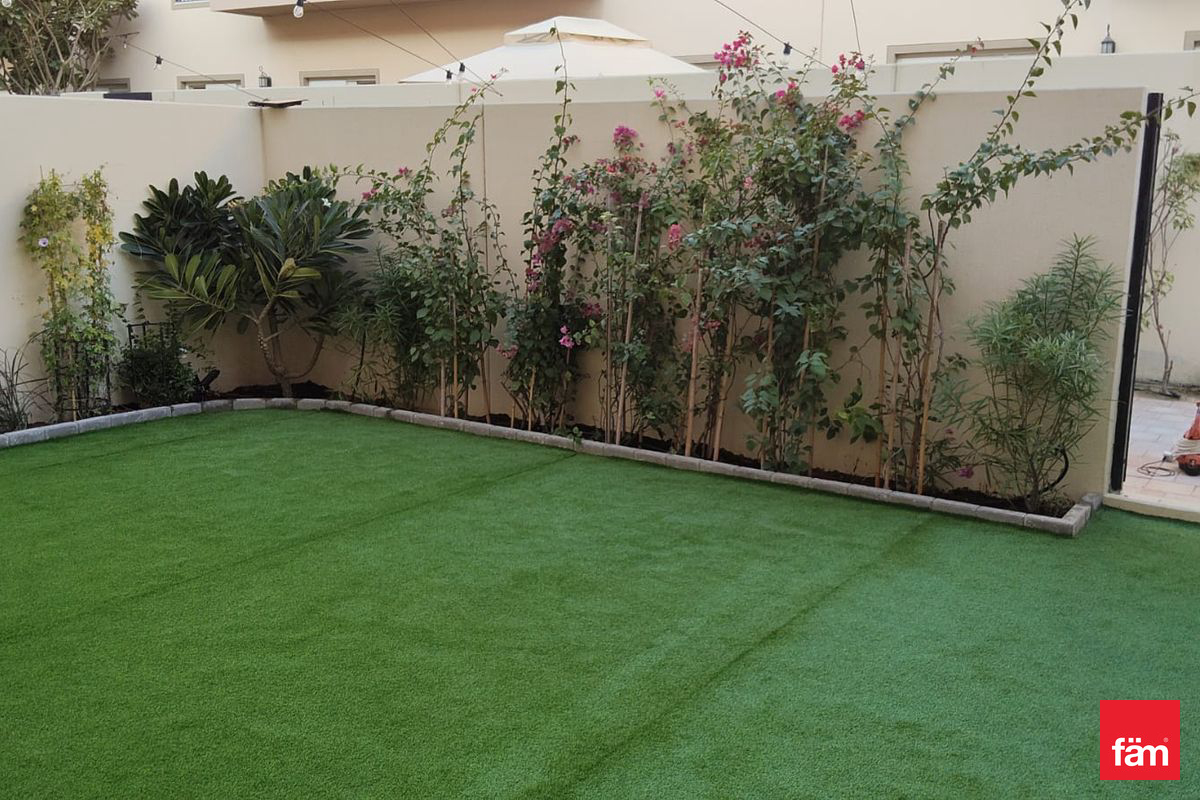 The townhouse features 4 bathrooms and boasts a serene community view. Designed for modern living, it includes built-in wardrobes, a maid’s room, and an open kitchen fitted with quality fixtures. Residents will appreciate the private garden, perfect for outdoor relaxation and entertainment.