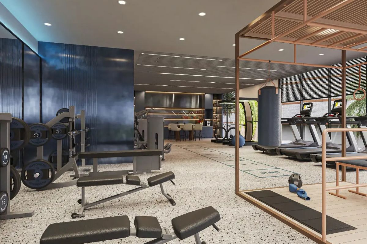 Fitness center with wellness deck and gym