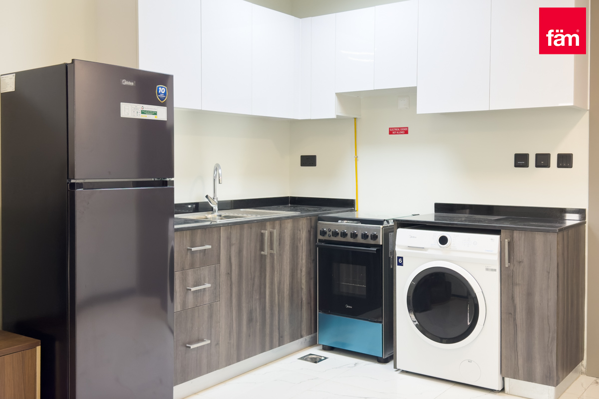 fäm Properties is proud to present this cozy and modern 1-bedroom apartment for rent in Rukan Residence Building 2, located in the vibrant community of Wadi Al Safa 7, Dubai. This beautifully furnished apartment offers a spacious living area of 516 sqft, featuring 2 bathrooms and a lovely balcony with stunning community views. The property is equipped with built-in wardrobes, fitted kitchen appliances, air conditioning, and access to shared gym and pool facilities.